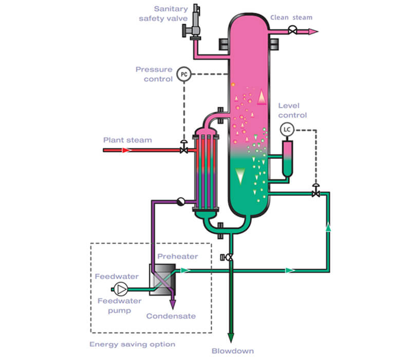 Steam Generation: Once the feedwater has been treated, it is heated to generate steam. Clean steam generators use a variety of heating methods, including electric heating elements, gas-fired burners, or steam coils.