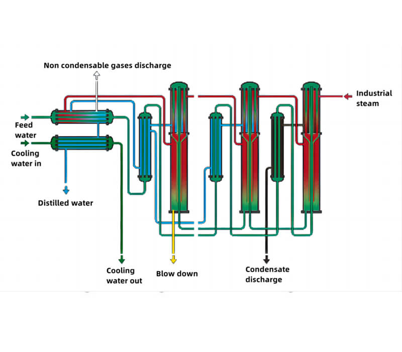 Superior multi effect distiller with unique three-stage separation mode to fully ensure the quality of produced water.