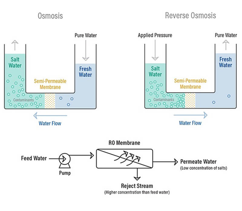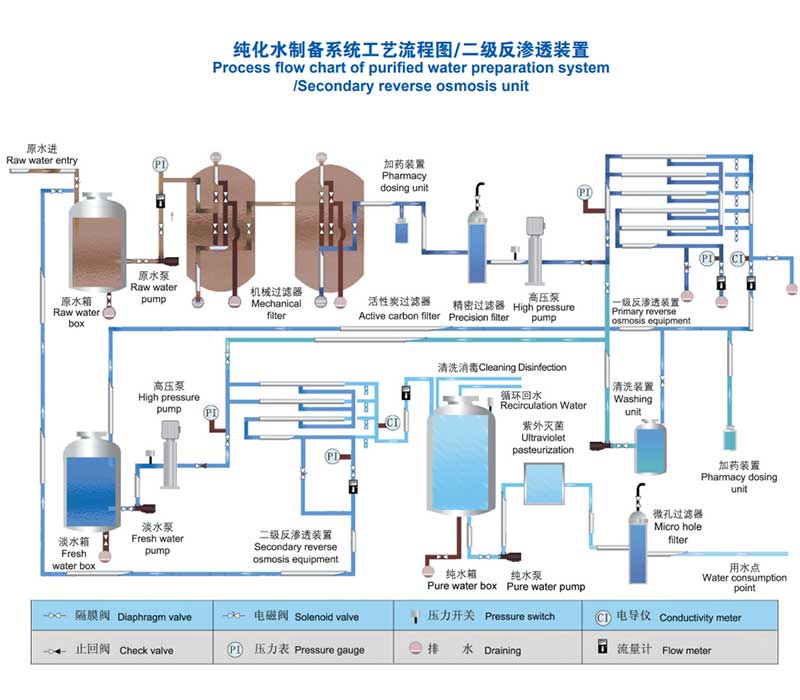 The reverse osmosis pharmaceuticals system has automatic switching between water making mode and circulating mode to reduce energy consumption.