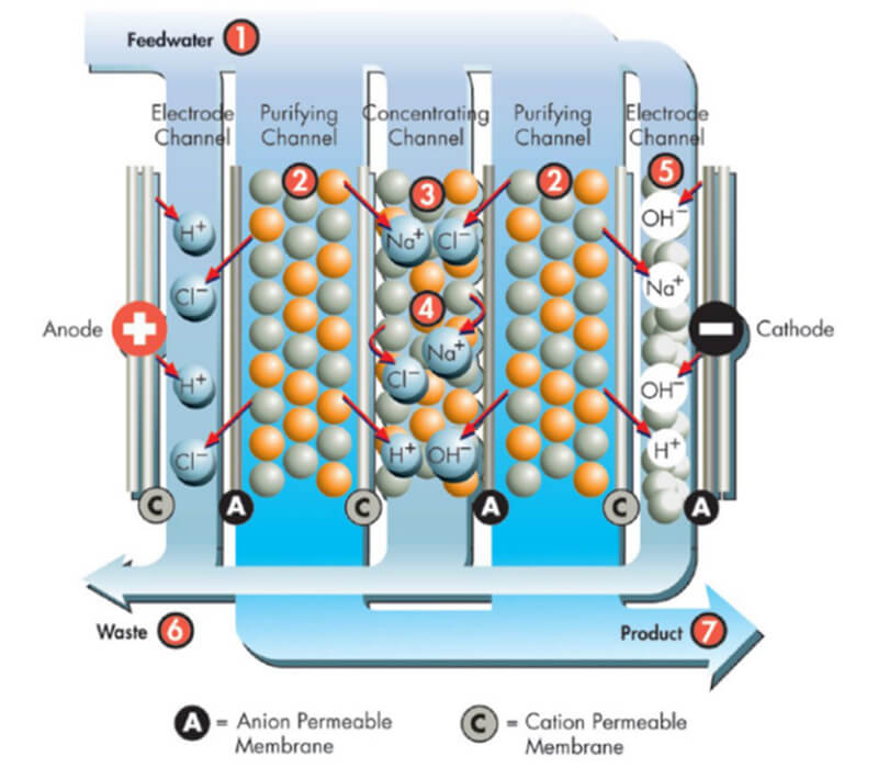 The combination of reverse osmosis and EDI has overcome the deficiency that reverse osmosis effluent cannot be deeply desalted, and further removed trace carbon dioxide, residual salt, silicon dioxide, boron and total organic carbon plasma in RO water, greatly improving the quality of purified water.